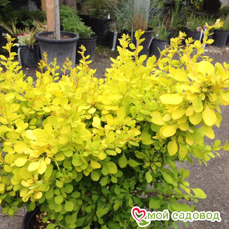 Барбарис тунберга Ауреа (Berberis thunbergii Aurea) — плотный округлый кустарник до 80см высотой и до 1м в диаметре. Молодые побеги желтовато-зеленого цвета. Листья мелкие, яйцевидные до 2см длиной золотисто-желтые, осенью краснеют, становясь оранжевыми. Кустарник декоративен в течение всего вегетационного периода. Предпочитает солнечные места, мирится с небольшим затенением, однако в тени листья могут терять желтую окраску листьев и зеленеть. К почвам нетребователен. Зимостоек.